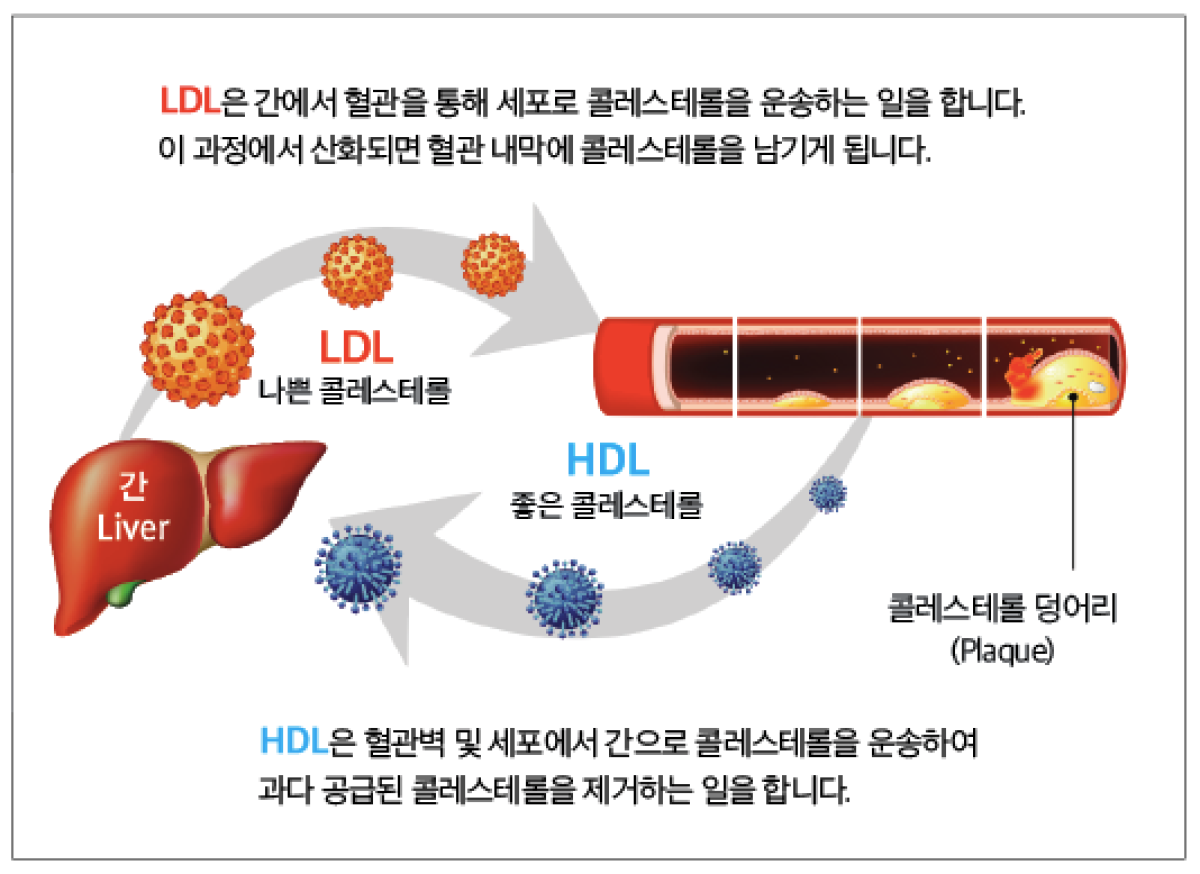 우리 몸속에서는 전형적으로 '총 콜레스테롤'과 'LDL 콜레스테롤', 'HDL 콜레스테롤' 등의 세 가지 종류의 콜레스테롤을 측정합니다. 총콜레스테롤은 혈액 내의 모든 콜레스테롤 농도를 뜻해요. LDL 콜레스테롤은 '나쁜 콜레스테롤'로 알려져 있으며, 혈관 벽에 콜레스테롤을 쌓아 동맥경화를 촉발합니다. 반면 HDL 콜레스테롤은 '좋은 콜레스테롤'이라고 지칭되며, 동맥경화를 대비하고 혈관을 완제하는 역할을 하고요.